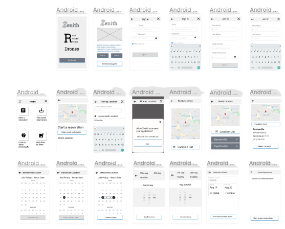 To get a better understanding of the layout of the application, I drew a few paper sketches of how I visualized the design. This application was originally called Zenith(Definition - The point in the sky or celestial sphere directly above an observer) but was later changed to RentWings so that it could be relatable to its value proposition statement.
