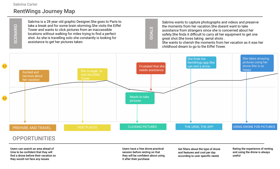 After gathering our research and learning more about our users,I then worked on a journey map of a typical user's experience. This was a great way to walk in the user's shoes and empathize with their emotional states during a certain process.